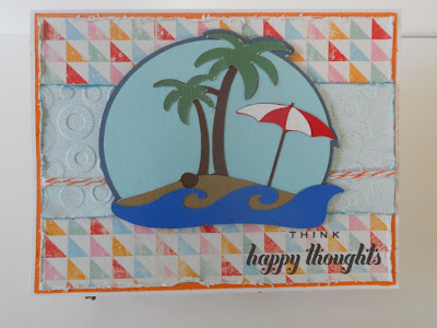 This is a card inspired by one I saw on Pinterest. The card base is 4x4. Hugs is cut from Lacy Labels at .5", & is cut from Kate's ABC's at 1.75", kisses is cut from Quarter Note at .6", and the scallop border is cut from Art Philosophy at .75". I used American Crafts brown/white baker's twine and a punch for the heart. Colors used are lagoon, cocoa, white daisy and champagne.